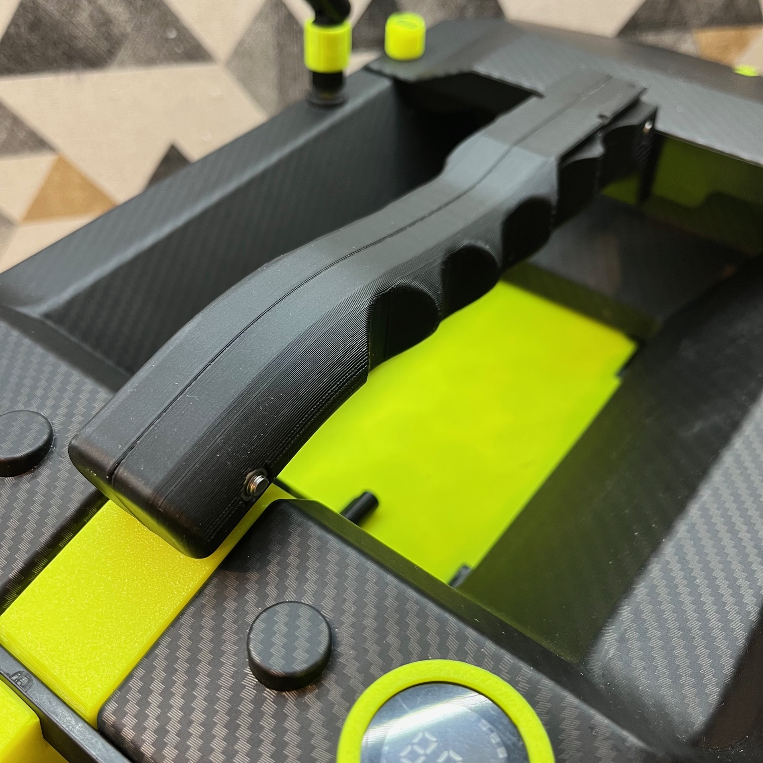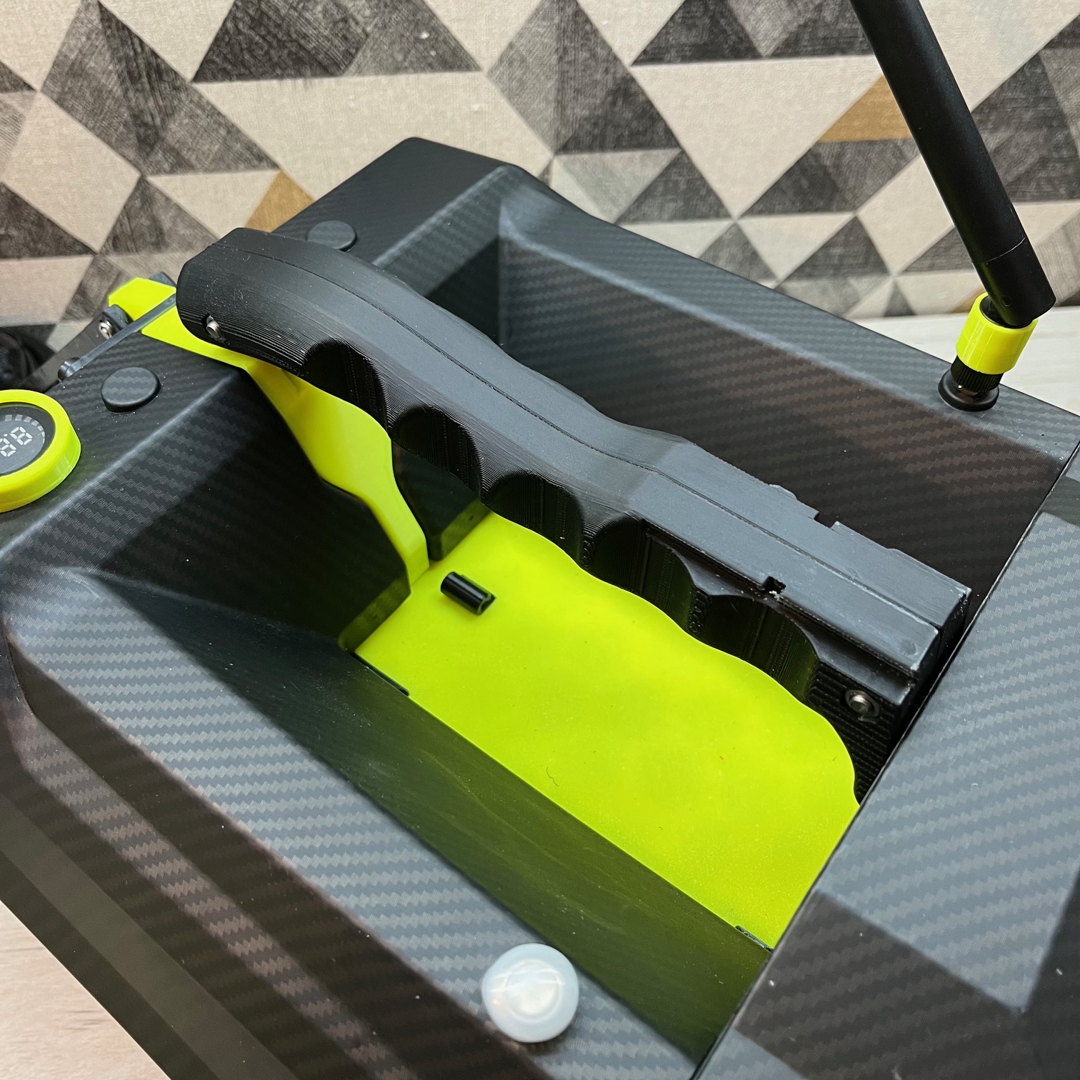 ⚙️ Elle se monte avec une fixation rapide en 2 points, un sous le capot de la batterie et l’autre sur le bouchon de la fente arrière, pour une tenue fiable et robuste.